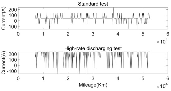Variation in current with mileage under standard test environment and high-rate current test environment.