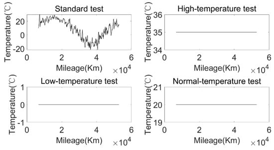 The relationship between environmental temperature and mileage under four different test environments.