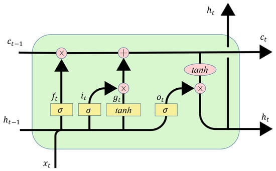 Due to the advantages of LSTM in time series prediction, LSTM has been widely used in battery remaining useful life prediction [36,37]. The LSTM neural network is a variant of the RNN that can solve the problem of gradient disappearance or gradient explosion in RNNs. The basic structure of LSTM is shown in Figure 26; it mainly includes three units: input gate, forget gate and output gate.