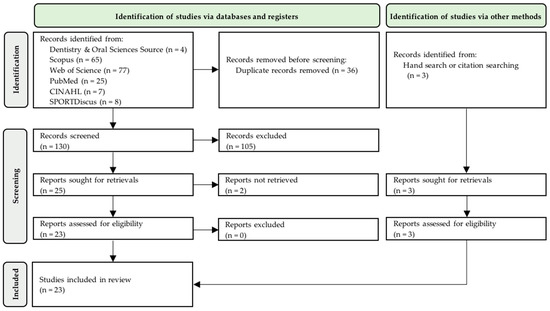 A total of 186 articles were found in the scientific-technical databases through the searching criteria previously described. Subsequently, the PRISMA 2020 flowchart was used for their selection (Figure 1). A total of 23 articles (Table 2) that fulfilled the selection criteria were included in the systematic review.