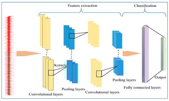 As a major DL approach, CNN offers exceptional performance in detection and classification problems. The development of CNNs involves three levels, namely the convolutional layer, pooling layer, and FC layer. Valuable features from the input data are extracted using the convolutional and pooling layers, while the FC layer is predominantly accountable for the classification process. The convolutional layer convolves the input signal using a sequence of kernels in a new receptive field. Each kernel was utilised to extract features from the input signal at specific locations by sliding the kernel with a fixed stride. The weight of the kernel was shared during the convolution procedure.