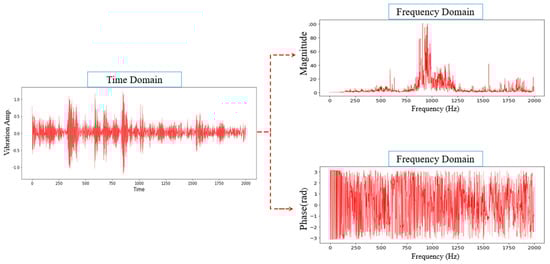 where p = 0, 1, 2, …, − 1. The frequency-domain information is also derived from the signal with multiplications as opposed to the N complex multiplication. Consequently, the computational complexity becomes O(N log N). These vibration signals can be processed through an FFT can process by maintaining the original amplitude and phase information, splitting them into individual sinusoidal oscillations at specific frequencies [54].