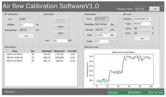 In order to improve the intelligence and automation of the calibration process, the GUI interface was designed by Python, as shown in Figure 4. The GUI interface runs on Raspberry PI’s Linux system. The Raspberry PI communicates with the intermediate controller and the VAV terminal unit based on Modbus. The VAV terminal unit transmits various environmental parameters and system parameters to the Raspberry PI by Modbus.
