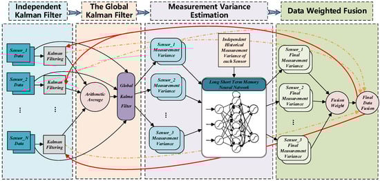 The stage of measurement variance estimation uses the measurement variance of sensor history as the input of a LSTM network to obtain the estimated measurement variance. Further, the estimated measurement variance is combined with the real-time measurement variance to obtain the final measurement variance of each sensor.