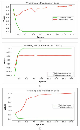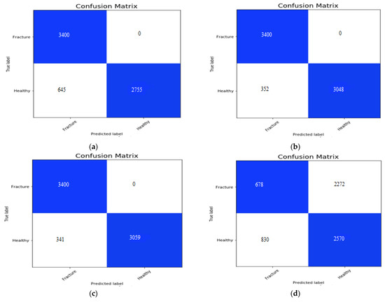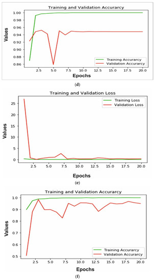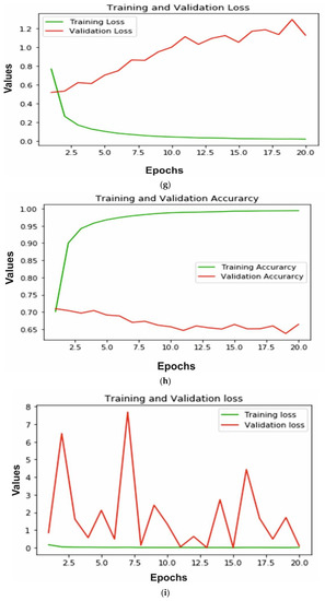 The data augmentation technique is also performed to improve the size of the dataset [44]. The basic rotation, flip horizontal, flip vertical and scaling are applied. After data augmentation, the dataset contains 34,000 bone images. Finally, the dataset is randomly divided into training and validation using 80% and 20% ratios, respectively. In this way, each class contain 13,600 images for training and 3400 images for testing. We have maintained the same size 256 × 256 × 3 images for each of the models during training and testing. Each model is trained for 20 epochs with a batch of 32 images. In addition, Adam and RMS Prop Optimizer work with a 3 × 10−3 learning rate for the training of models.