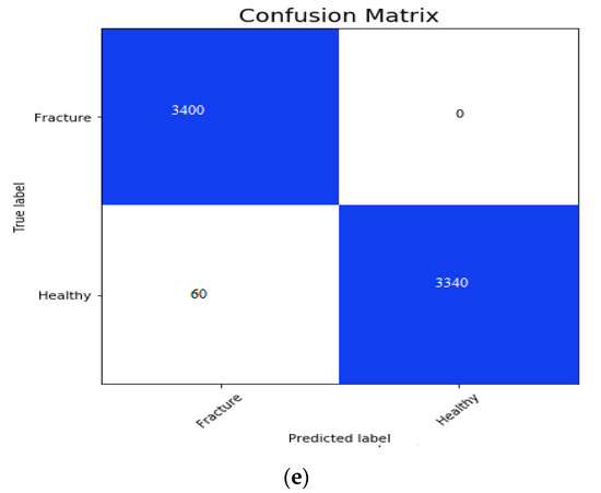 Furthermore, the F-score for each model is shown in Figure 12. For both fractured and healthy bone, the proposed SFNet achieved a 99% F1-score. Whereas, VGG16 and ResNeXt obtained 95% and AlexNet a 91% F1-score. The least F1-score of 59% for healthy bone was observed in MobileNetV2.