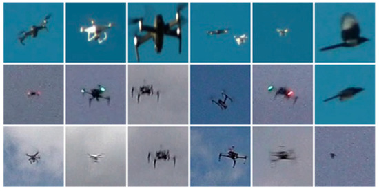 - Aker, C.; Kalkan, S. Using deep networks for drone detection. In Proceedings of the 14th IEEE International Conference on Advanced Video and Signal Based Surveillance (AVSS), Lecce, Italy, 29 August–1 September 2017; pp. 1–6. [Google Scholar]