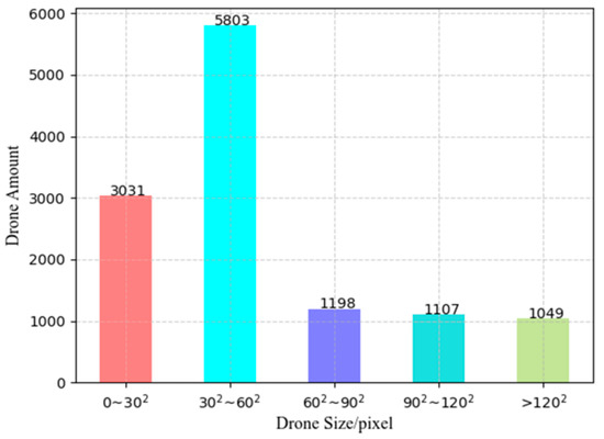 - Comparing the data in the sixth row and the fifth row, it can be seen that reducing the size of the candidate region from 416 × 416 to 96 × 96 can improve the detection speed, but it will lead to a slight decrease in mAP. This is mainly because of the 96 × 96 input image, which reduces the detection accuracy of larger size drones. In specific applications, actual adjustments can be made according to the distance between the fixed camera and the monitored drone.
