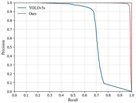 - From the data in the first and second rows, it can be seen that after using the background difference, the mAP value increased from 73.3% to 97.0%, an increase of 23.7%, this is because the original YOLOv5s directly reduces the high-resolution image to a fixed size and then performs feature extraction during detection, which is easy to cause small targets to be lost, and it is difficult to extract effective features, resulting in a poor detection effect.
