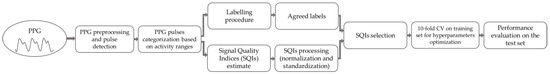 Several researchers have already developed automatic methods for PPG signal quality assessment. Table 1 shows a selection of their works [24,28,29,30,31,32,33,34,35,36,37].