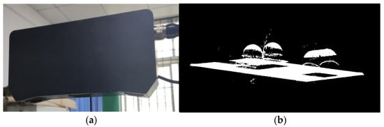 Experimental apparatus and scanning results. (a) Three-dimensional scanner; (b) actual scanned point cloud.