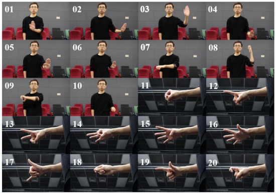 Figure 2, the former nine movements are dynamic, and the last 11 movements are static. Dynamic gestures contain an activation gesture. During the execution of dynamic gestures, the activation gesture is maintained all the time.
