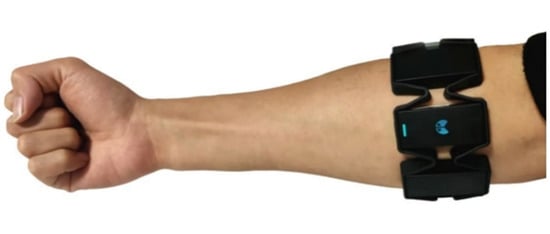 The Myo armband has eight electrode sensors that can capture sEMG signals from the skin surface. There is also an inertial measurement unit with a three-axis gyroscope, three-axis accelerometer, and three-axis magnetometer. Data captured is sent wirelessly to the workstation via built-in Bluetooth.