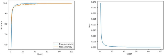 Figure 17, however, the test accuracy of the LSTM-Res model reaches up to 99.67% after being stabilized; moreover, the Loss value is almost 0 at a steady state.