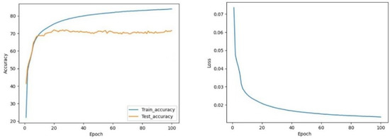 The test accuracy graph indicates that the CNN-Res model’s training process converges at the 33rd epoch, which takes only about 1/3 of the entire training time. Thus, it can be seen that one primary advantage of the introduction of the residual network is that the CNN-Res model significantly improves the convergence speed of training when the network becomes deeper; its training efficiency is strengthened a lot.