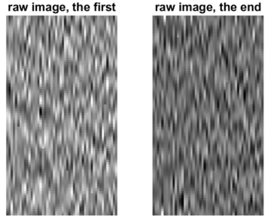 Because the BCI data are random signals, they must be treated in statistical signal-processing domains. Figure 9 shows the typical neuro raw images considered for the QR-EFA. The left image is for the first trial, and the right image is for the last trial.