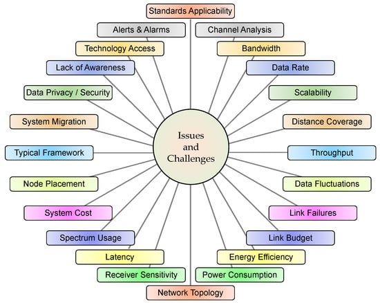 Though various works have been carried out on the implementation of ISMs, there is still much scope to increase the performance of these networks [9,10,11,89,90]. In this view, this section presents various possible research directions. All the possibilities are broken up into eight directions, as shown in Figure 10. These are outlined as general perspectives and emphasize LPWAN.