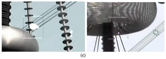 The use of UV-visible dual-spectra cameras is well documented in the technical literature to detect discharges in different applications, including insulator strings [,,], transformer bushings [], motor windings [], transmission line inspection using unmanned aerial vehicles (UAVs) [].