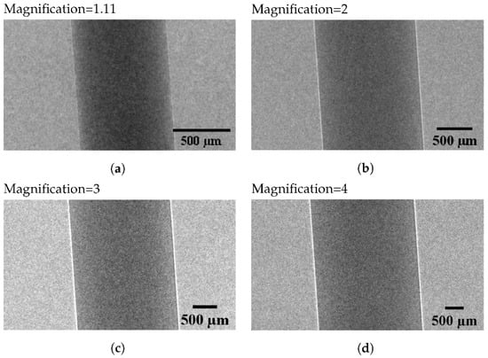 Edge-enhancement effect of PB-XPCi for a 0.7 mm PTFE rod at different magnifications from 1.1 to 4.