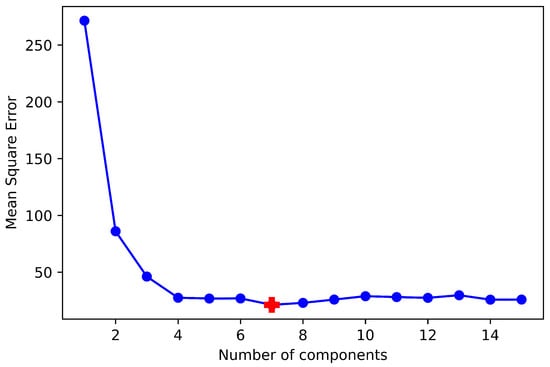 Mean square error as a function of the number of latent variables (without variable selection for nitrogen content).