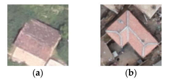 Examples of buildings in different areas: (a) Ludian dataset; (b) Yushu dataset.