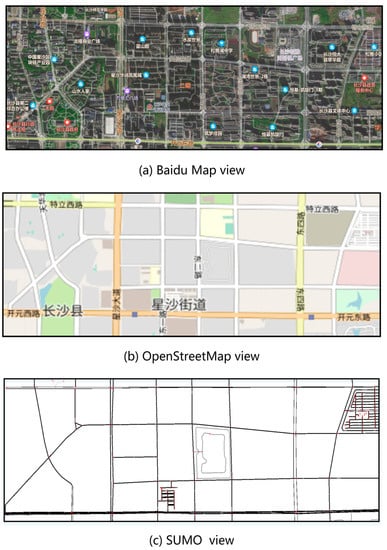 - Lopez, P.A.; Behrisch, M.; Bieker-Walz, L.; Erdmann, J.; Flötteröd, Y.P.; Hilbrich, R. Microscopic traffic simulation using sumo. In Proceedings of the 2018 21st international conference on intelligent transportation systems (ITSC), Maui, HI, USA, 4–7 November 2018; pp. 2575–2582. [Google Scholar]
