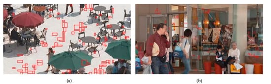 In addition, we present the modes using subjective graphs of some sequences in QP 27. Figure 9, Figure 10 and Figure 11 show the respective results. The red rectangular boxes are the blocks that utilized our proposed algorithm to conduct intra prediction. As can be seen, in some areas with similar textures, our modes were more competitive. This is because the traditional VVC intra prediction modes are more suitable for blocks with a single texture direction or simple areas, and our proposed algorithm can partly compensate for this shortcoming. These results further verify the good performance of our proposed fusion-based algorithm.