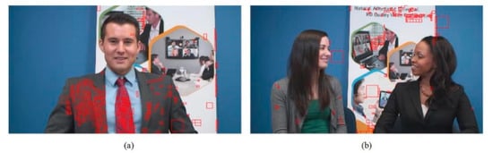 The mode subjective graphs. Images from the JVET CTC [42]: (a) “Johnny” (1280 × 720); (b) “KristenAndSara” (1280 × 720).
