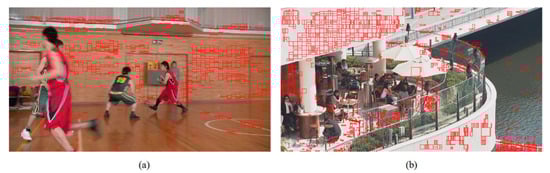 The mode subjective graphs. Images from the JVET CTC [42]: (a) “BasketballDrive” (1920 × 1080); (b) “BQTerrace” (1920 × 1080).