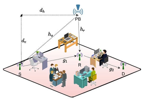 The DH AF relaying system under consideration is given in Figure 1, where the source (S) and relay (R) are power-constrained nodes and harvest their energy from a dedicated power beacon (PB). Hence, S and R use their harvested powers for data transmission. In the absence of a direct link between S and the destination (D), the communication is provided with the help of R. All nodes are equipped with only one antenna.