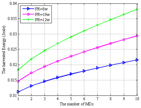 where is the transmit power of MD i and and . I is the noise power, is the transmission bandwidth. The harvested energy and transmission energy consumption in half-duplex mode are respectively calculated by [35],