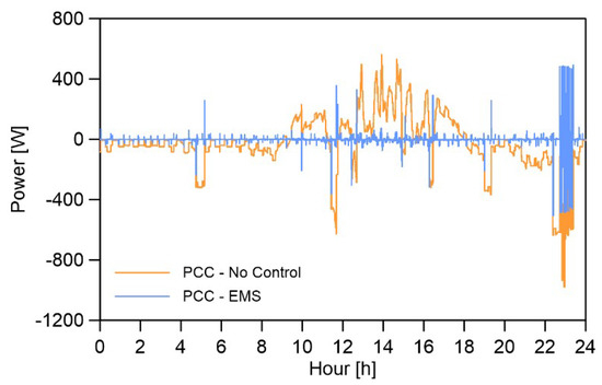 Table 2 summarizes the results, the first row represents 24 h energy values while the power exchange root mean square error (RMSE) indicators are provided in the second row. These RMSEs are calculated assuming that the ideal situation is zero PCC power exchange.