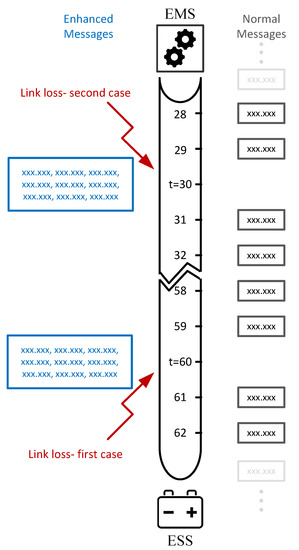 When the link is lost the ESS becomes disconnected from the EMS and therefore is not able to update its setpoints. In this case the ESS can either operate with its last received setpoint or shut down in order to prevent harmful charge/discharge operation. In either of these cases, the optimum MG operation and internal power balancing are no longer maintained.