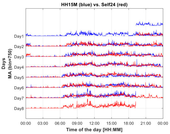 Moreover, when comparing any single MA profile with itself being shifted by 24 h and 12 h, respectively, the following indexes were obtained by considering the overlapped sections, 6 days and 6 days and a half, respectively: