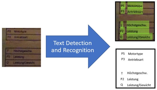 Three groups of models for detecting text can be distinguished amongst the various deep learning methods. In the first type of model, the text is detected through a so-called boundary box regression analysis. Here, the boundary box of the text is determined as the output of the model. For example, in the “you only look once” (YOLO) method, the boundary boxes are determined using a grid. The algorithm determines the text object within the grid and how the object is shifted on the x- and y-axes with respect to the center of the cell. [22]. In this first type of model, the model is composed of three components: (1) a feature extraction part, which is responsible for extracting the features from the original image, for which pre-trained networks such as ResNet 50, ResNet 101, and VGG 16 with ImageNet can be used [23]; (2) a feature fusion part, where the different extracted features are combined to create combined features; and (3) an output part, where the result of the text detection (i.e., the boundary boxes) is calculated. The nature of the traditional object detection process is different from that of text detection. The main differences are as follows: