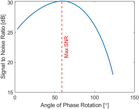 SNR vs. Angle of phase rotation for the axial dataset acquired at 250 kHz.