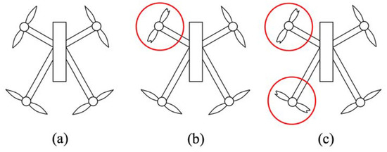 Cases for Propeller Faults with (a) Healthy, (b) One Set of Faulty Propellers (1SFP), and (c) Two Sets of Faulty Propellers (2SFP).