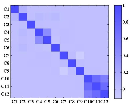 In practice projects, the positions of many sensors are close (for example, they are installed on the same sling), and they can share a general network since their data structures are similar (In other words, they are highly relevant). Inspired by the covariance-driven random subspace method, the correlation coefficient is utilized to measure the correlation of monitoring data between different channels, and a threshold of correlation coefficient is necessary to determine the number of networks built. The correlation coefficient between two channels can be calculated by Equation (1):