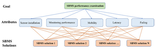 A flowchart of SBMS-ES is illustrated in Figure 1. It is divided into three subsections, i.e., the attributes evaluation, the weighting allocation, and the final score calculation. The attribute evaluation introduces the identified essential attributes in SBMS-ES and the justifications. Furthermore, the evaluation principles of the attributes are illustrated. The weighting allocation describes how the weighting for each attribute is determined. The final score calculation depicts the way to calculate the final score and select the most desired SBMS solution. The details of these subsections are specified in the following Section 3.3, Section 3.4 and Section 3.5.