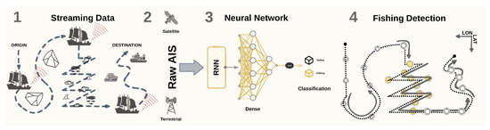 - Nguyen, D.; Vadaine, R.; Hajduch, G.; Garello, R.; Fablet, R. A Multi-Task Deep Learning Architecture for Maritime Surveillance Using AIS Data Streams. In Proceedings of the 2018 IEEE 5th International Conference on Data Science and Advanced Analytics (DSAA), Turin, Italy, 1–3 October 2018; pp. 331–340. [Google Scholar] [CrossRef]