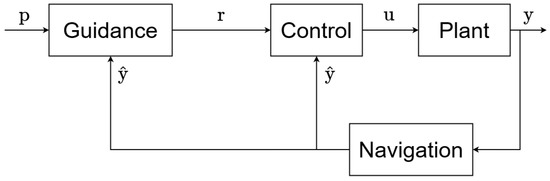 In control theory, a guidance–navigation–control (GNC) system is the name of the global hierarchy of algorithms structuring the control of a dynamical system [36]. A general GNC system is represented in Figure 1. Each block represents an independent system or algorithm. The components of a GNC system are the following: