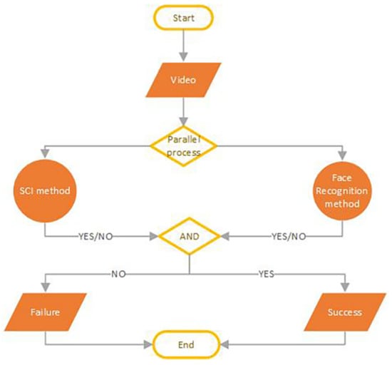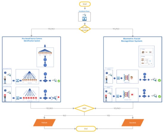 Flow-Chart of biometric face recognition system with Source Camera Identification (SCI). The facial recognition process and the SCI method work as long as both the procedures are successful. Otherwise, the general system fails.