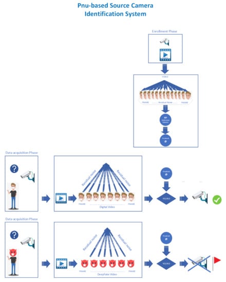 To make the facial recognition system both more robust as well as more reliable even in the case of counterfeiting operations, in combination with a facial recognition system that can recognize masked faces with a greater accuracy, we have included an additional level of security through the PNU-based Source Camera Identification (SCI, for short) approach, which allows evaluating the integrity of video images.