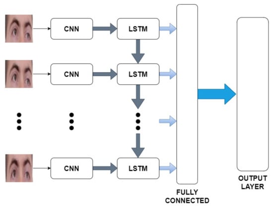 The proposed CNN-LSTM architecture allows to extract the spatial characteristics from each frame and the temporal characteristics between the frames. It is possible to identify two basic steps in the facial recognition process: (1) a pre-processing phase, in which the input videos are processed to obtain the frame sequences of the periocular region and in which the data are standardized, and (2) an extraction step of the characteristics and classification to have a structure that allows us to recognize the faces of the subjects. The overall workflow is shown in Figure 4.