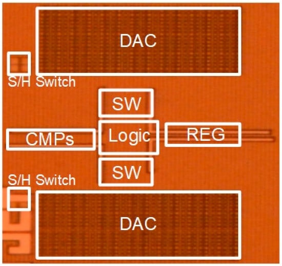 - Tong, X.; Jin, X.; Zhang, C.; Xin, X.; Dong, S.; Li, Q. A 0.6-V 12-bit 13.2-fJ/conversion-step SAR ADC with time-domain VCDL-based comparator and metastability immunity technique. Microelectron. J. 2022, 122, 105406. [Google Scholar] [CrossRef]