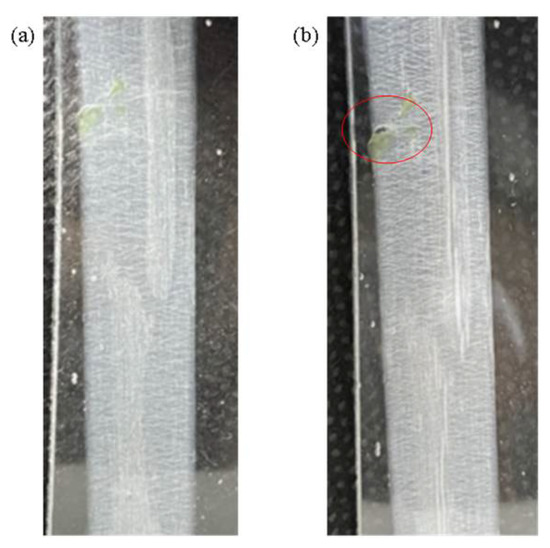 Figure 2. The main equipment are the pump thruster, the power supply, and the collecting platform; the speed of the pump thruster is 160 μL/h using a 25 G needle tip (inner diameter 0.26 mm, needle length 46 mm), the voltage supply is 2.5 kV, the positive electrode of the voltage supply is fixed to the needle tip, and the negative electrode is fixed to the collecting plate. The NFES distance is less than 5 mm. NFES is easier to collect into neat PVDF fiber than FFES. The distance between the collecting platform and the needle tip depends on the humidity of the environment, the nature of the solution, the working voltage, etc. When there is a short distance, it is easy to generate an electrostatic reaction; when there is a long distance, is not easy to generate a Taylor cone and so we cannot generate PVDF fiber. The distance between the needle tip and the collecting platform in this experiment is 1 mm, the rotation speed of the copper cylinder is 1500 rpm, the spinning time is 1 h, and the environmental humidity is 25%.