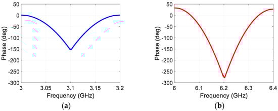 Since the target responses are the second harmonic version of the transmit FMCW waveform, their phase must exhibit a nonlinear characteristic as a function of the frequency. As an example, the phase of the response from the laptop in comparison to the transmit waveform is shown in Figure 9. In Figure 9a, the phase of the transmit waveform is shown, while in Figure 9b the phase of the harmonic response from the laptop is shown, over their respective frequency bands. It can be seen that the phase change in the harmonic response is twice that in the fundamental waveform as expected. Other target responses are also confirmed to exhibit the same phase behavior.