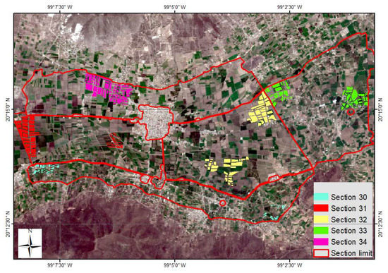 - Martínez-Casasnovas, J.A.; Martín-Montero, A.; Auxiliadora Casterad, M. Mapping multi-year cropping patterns in small irrigation districts from time-series analysis of Landsat TM images. Eur. J. Agron. 2005, 23, 159–169. [Google Scholar] [CrossRef]