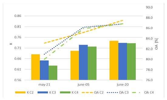 | Combination | Kappa Coefficient | Overall Accuracy % | Corn | Alfalfa | Bean | |||