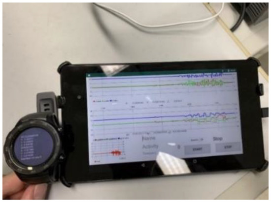 Huawei Watch 2 and tablet. The waveforms transferred from the device are displayed and recorded on the tablet.
